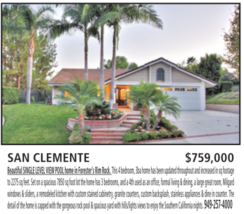 SAN CLEMENTE $759,000 Beautiful SINGLE LEVELVIEWPOOLhome in Forester’s RimRock. This 4bedroom, 3ba homehas been updatedthroughout and increasedinsqfootage