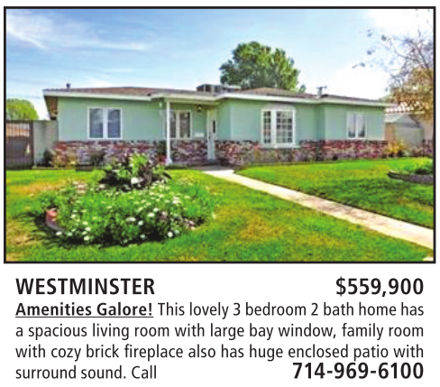 aspacious living room with large bay window, family room with cozy brick fireplace also has huge enclosed patio with surroundsound. Call 714-969-6100