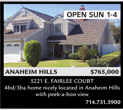 5221 E. FAIRLEECOURT 4bd/3bahomenicely located in Anaheim Hills with peek-a-boo view 714.731.5900