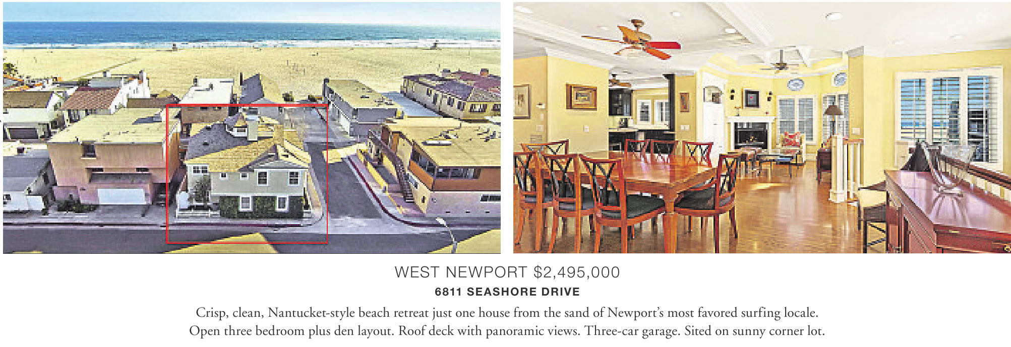 6811 SEASHORE DRIVE Crisp, clean, Nantucket-style beach retreat just one house from the sand of Newport’s most favored surfing locale.