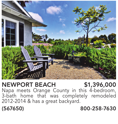 NEWPORT BEACH $1,396,000 Napa meets Orange County in this 4-bedroom, 3-bath home that was completely remodeled 2012-2014 & has a great backyard. (567650) 800-258-7630