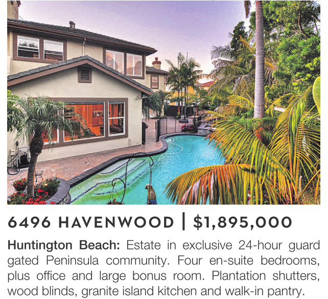 Huntington Beach: Estate in exclusive 24-hour guard gated Peninsula community. Four en-suite bedrooms, plus office and large bonus room. Plantation shutters, wood blinds, granite island kitchen and walk-in pantry.