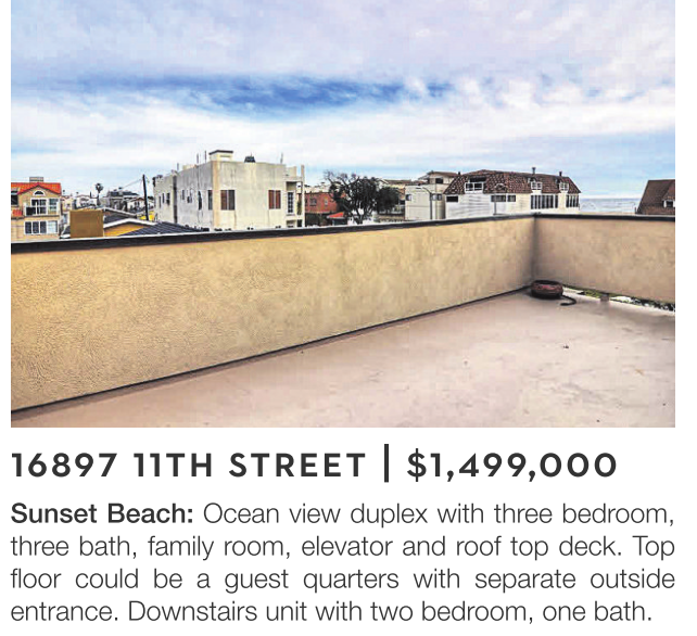 Sunset Beach: Ocean view duplex with three bedroom, three bath, family room, elevator and roof top deck. Top floor could be a guest quarters with separate outside entrance. Downstairs unit with two bedroom, one bath.