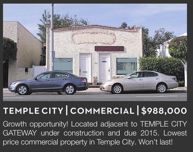 Growth opportunity! Located adjacent to TEMPLE CITY GATEWAY under construction and due 2015. Lowest price commercial property in Temple City. Won’t last!