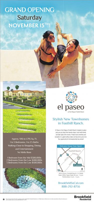 201 El Paseo, Foothill Ranch, CA 92610 Sales Office Open Daily 10 a.m. - 5 p.m.