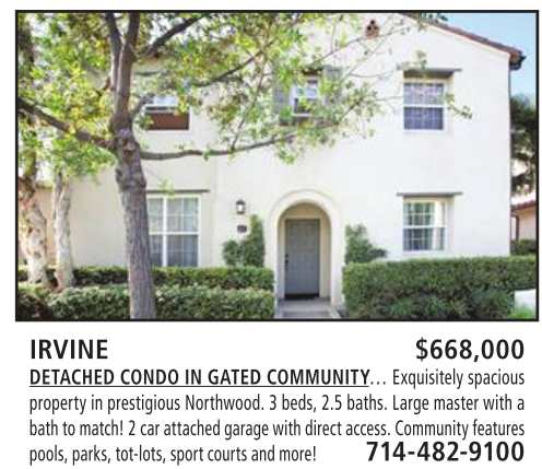 IRVINE $668,000 DETACHED CONDO INGATED COMMUNITY… Exquisitely spacious