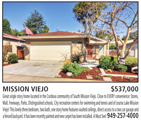 MISSION VIEJO $537,000 Great single story home located inthe Cordova community ofSouth Mission Viejo. Close to EVERY convenience: Stores,
