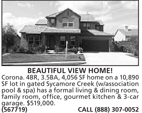 Corona.4BR,3.5BA,4,056 SF home on a10,890