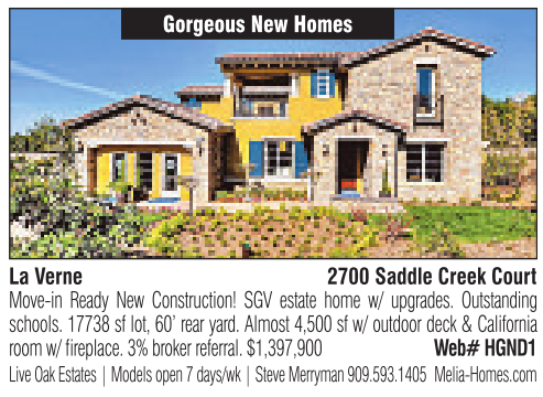 Move-in Ready New Construction! SGV estate home w/ upgrades. Outstanding schools. 17738 sf lot, 60’ rear yard. Almost 4,500 sf w/ outdoor deck &California room w/ fireplace. 3% broker referral. $1,397,900 Web# HGND1