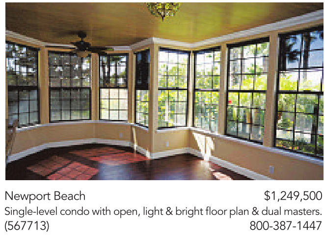 Newport Beach $1,249,500 Single-level condo with open, light &bright floor plan &dual masters. (567713) 800-387-1447