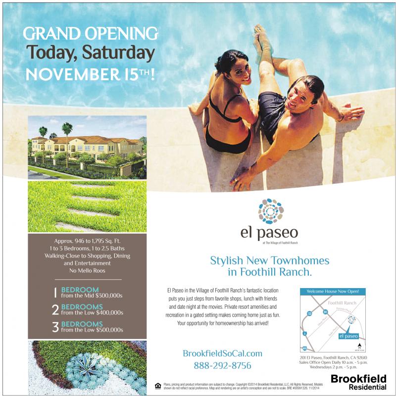 201 El Paseo, Foothill Ranch, CA 92610 Sales Office Open Daily 10 a.m. -5p.m.