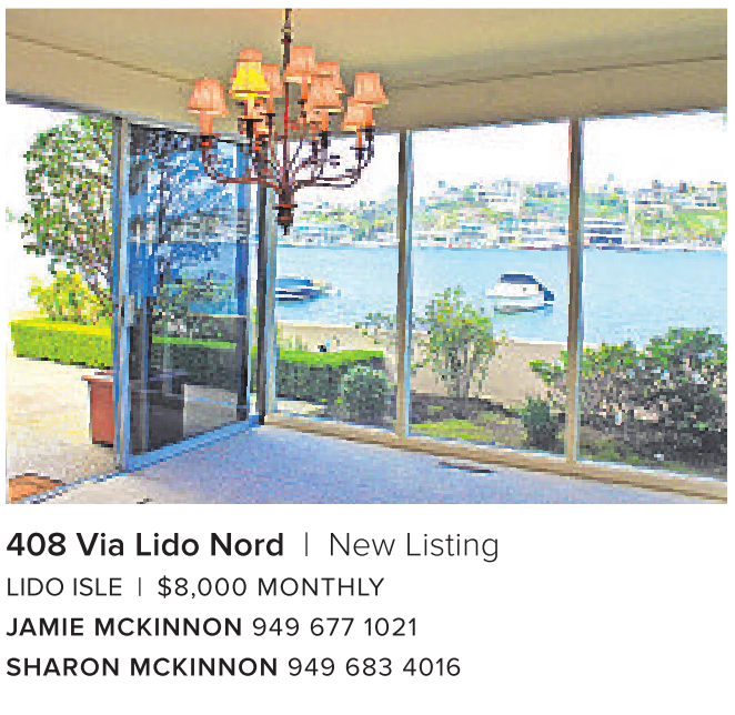 LIDO ISLE | $8,000 MONTHLY JAMIE MCKINNON 949 677 1021 SHARON MCKINNON 949 683 4016
