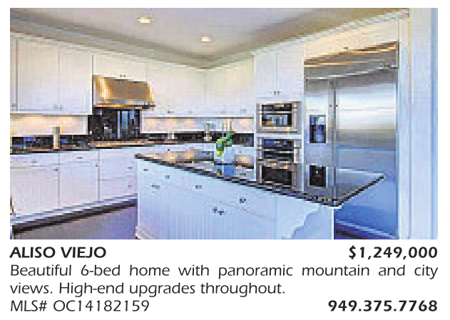 ALISO VIEJO $1,249,000 Beautiful 6-bed home with panoramic mountain and city views. High-end upgrades throughout. MLS# OC14182159 949.375.7768