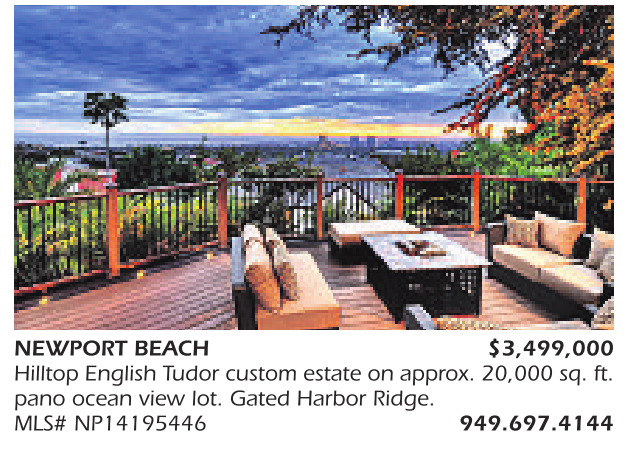 NEWPORT BEACH $3,499,000 Hilltop English Tudor custom estate on approx. 20,000 sq. ft. pano ocean view lot. Gated Harbor Ridge. MLS# NP14195446 949.697.4144