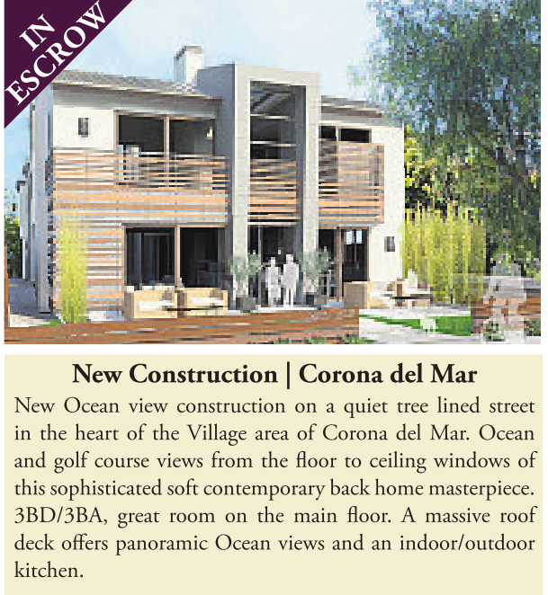New Construction | Corona del Mar New Ocean view construction on a quiet tree lined street in the heart of the Village area of Corona del Mar. Ocean and golf course views from the floor to ceiling windows of this sophisticated soft contemporaryback home masterpiece. 3BD/3BA, great room on the main floor. A massive roof deck offers panoramic Ocean views and an indoor/outdoor kitchen.