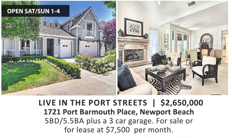 1721 Port Barmouth Place, Newport Beach 5BD/5.5BA plus a 3 car garage. For sale or for lease at $7,500 per month.