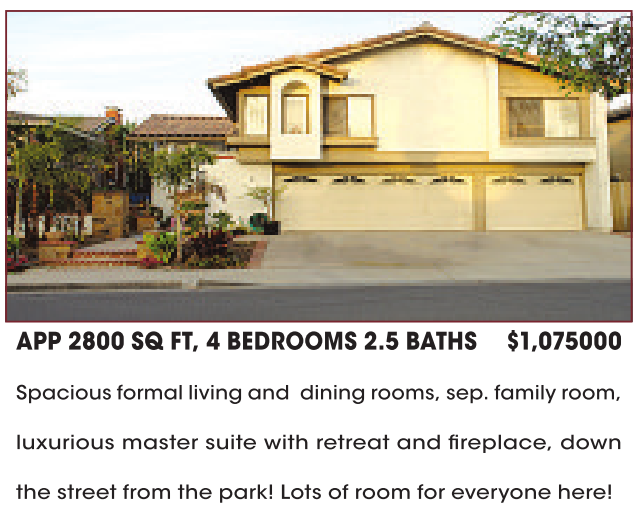 APP 2800 SQ FT, 4 BEDROOMS 2.5 BATHS $1,075000