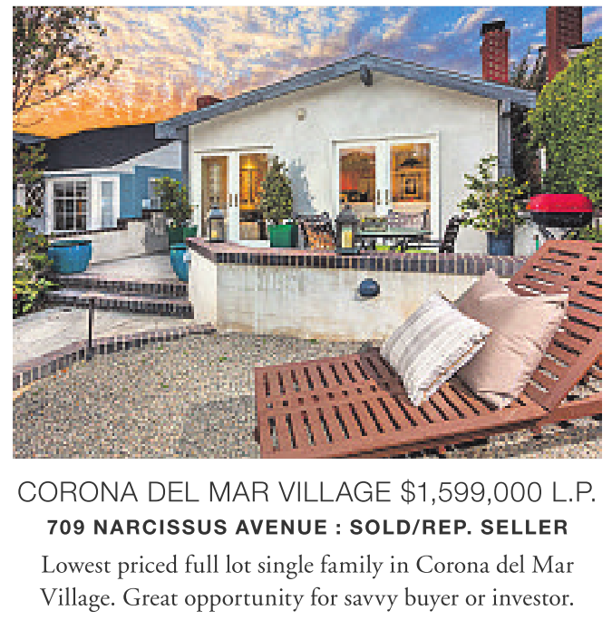 709 NARCISSUS AVENUE : SOLD/REP. SELLER Lowest priced full lot single family in Corona del Mar Village. Great opportunity for savvy buyer or investor.