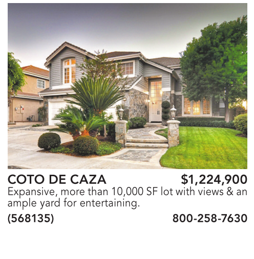 COTO DE CAZA $1,224,900 Expansive, more than 10,000 SF lot with views &an ample yard for entertaining. (568135) 800-258-7630