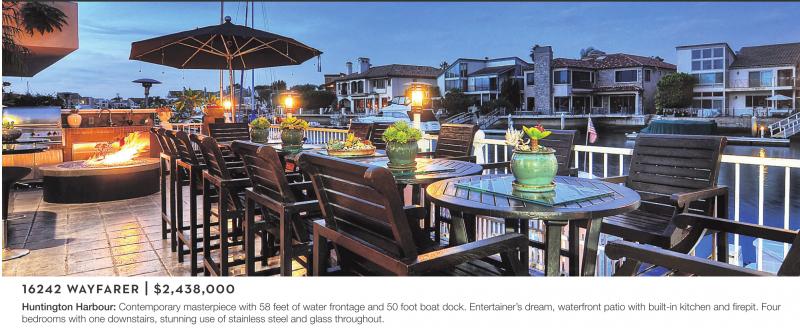 Huntington Harbour: Contemporary masterpiece with 58 feet of water frontage and 50 foot boat dock. Entertainer’s dream, waterfront patio with built-in kitchen and firepit. Four bedrooms with one downstairs, stunning use of stainless steel and glass throughout.