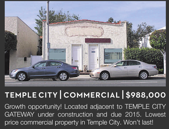 Growth opportunity! Located adjacent to TEMPLE CITY GATEWAY under construction and due 2015. Lowest price commercial property in Temple City. Won’t last!
