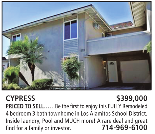 4bedroom3bathtownhome in Los AlamitosSchool District. Inside laundry, Pool andMUCHmore!Arare deal andgreat findfor afamilyorinvestor. 714-969-6100