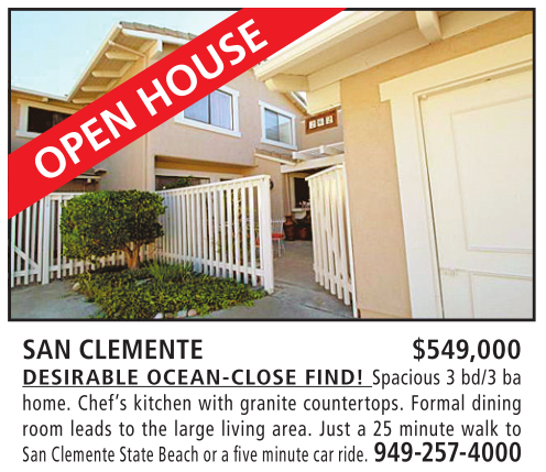 home. Chef’s kitchen with granite countertops. Formal dining room leads to the large living area. Just a 25 minute walk to San Clemente State Beach orafiveminute car ride. 949-257-4000