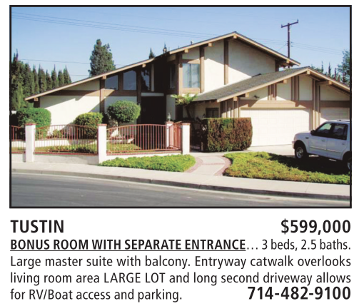 TUSTIN $599,000 BONUSROOMWITH SEPARATEENTRANCE…3beds, 2.5baths.