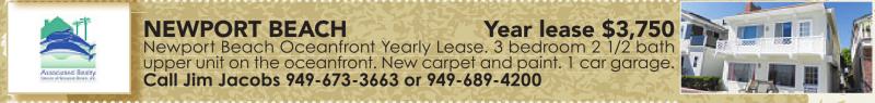 Newport Beach Oceanfront Yearly Lease. 3 bedroom 2 1/2 bath