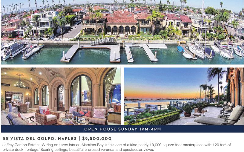 OPEN HOUSE SUNDAY 1PM-4PM 55 VISTA DEL GOLFO, NAPLES | $9,500,000 Jeffrey Carlton Estate - Sitting on three lots on Alamitos Bay is this one of a kind nearly 10,000 square foot masterpiece with 120 feet of private dock frontage. Soaring ceilings, beautiful enclosed veranda and spectacular views.