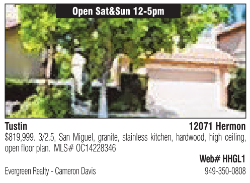 12071 Hermon $819,999. 3/2.5, San Miguel, granite, stainless kitchen, hardwood, high ceiling, openfloorplan. MLS#OC14228346 Web# HHGL1