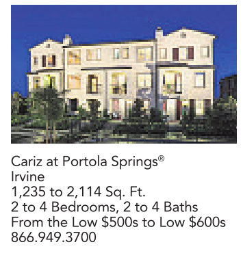 Cariz atPortola Springs ® Irvine 1,235 to 2,114 Sq. Ft. 2to4Bedrooms, 2to4Baths From the Low $500s to Low $600s 866.949.3700