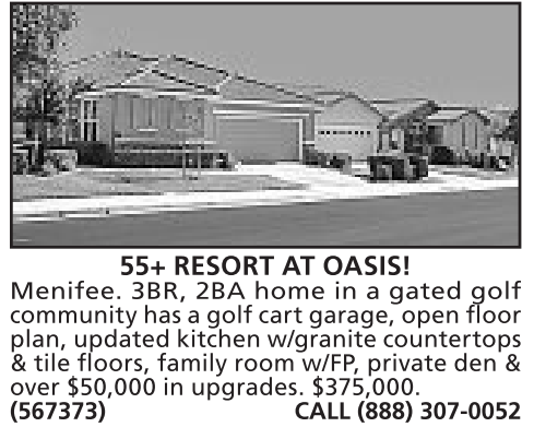 plan, updated kitchen w/granite countertops & tile floors, family room w/FP, private den &over $50,000 in upgrades. $375,000. (567373) CALL (888) 307-0052