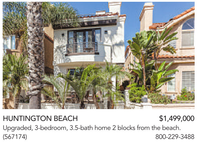 HUNTINGTON BEACH $1,499,000 Upgraded, 3-bedroom, 3.5-bath home 2blocks from the beach. (567174) 800-229-3488