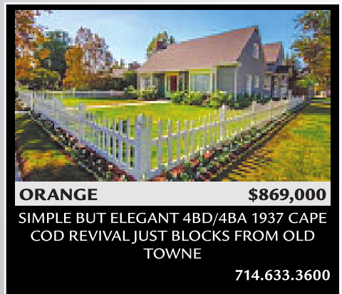 ORANGE $869,000 SIMPLE BUT ELEGANT 4BD/4BA 1937 CAPE COD REVIVAL JUST BLOCKS FROM OLD TOWNE 714.633.3600