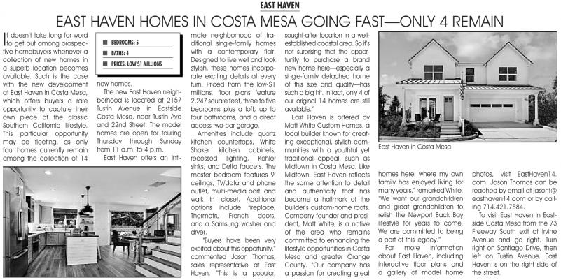 EAST HAVEN HOMES IN COSTA MESA GOING FAST—ONLY 4 REMAIN