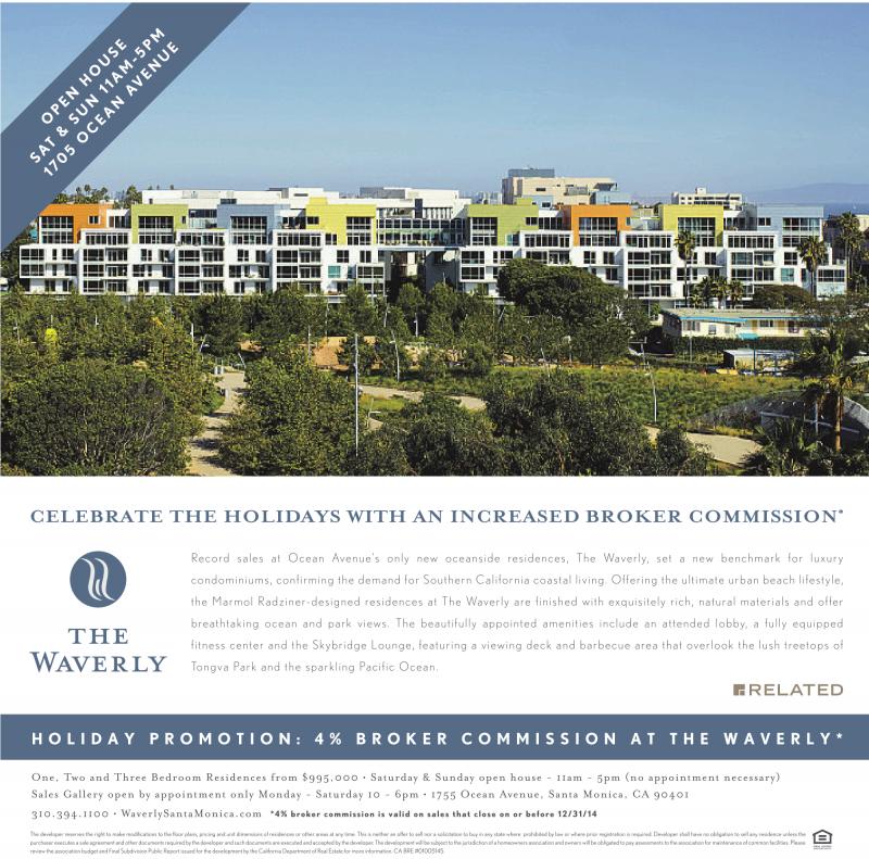 310.394.1100 • WaverlySantaMonica.com *4% broker commission is valid on sales that close on or before 12/31/14