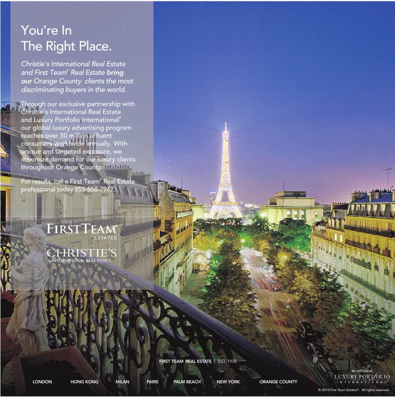 Through our exclusive partnership with Christie's International Real Estate and Luxury Portfolio International ® our global luxury advertising program reaches over 50 million affluent consumers worldwide annually. With unique and targeted exposure, we maximize demand for our luxury clients throughout Orange County.