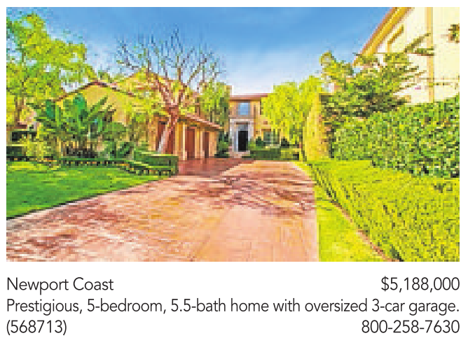 NewportCoast $5,188,000 Prestigious, 5-bedroom,5.5-bath homewith oversized 3-car garage. (568713) 800-258-7630