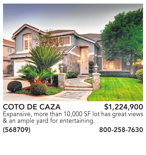COTO DE CAZA $1,224,900 Expansive, more than 10,000 SF lot has great views & an ample yard for entertaining. (568709) 800-258-7630