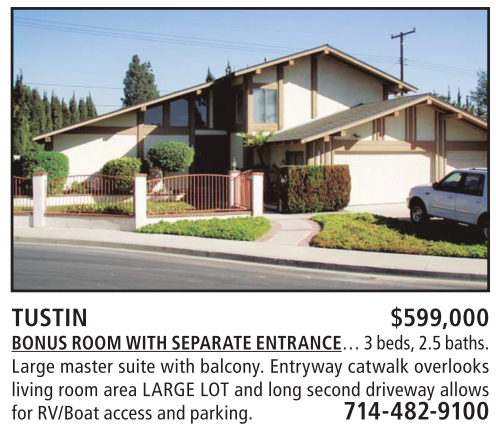 TUSTIN $599,000 BONUSROOMWITH SEPARATE ENTRANCE…3beds, 2.5baths.