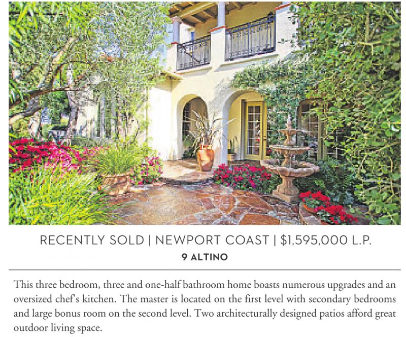 RECENTLY SOLD | NEWPORT COAST | $1,595,000 L.P.