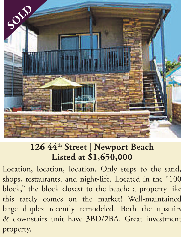 126 44 th Street | Newport Beach Listed at $1,650,000