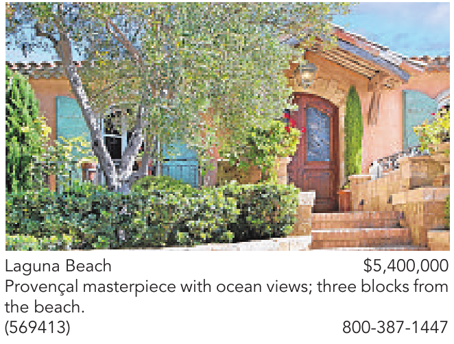 Laguna Beach $5,400,000 Provençal masterpiece with ocean views; three blocks from the beach. (569413) 800-387-1447