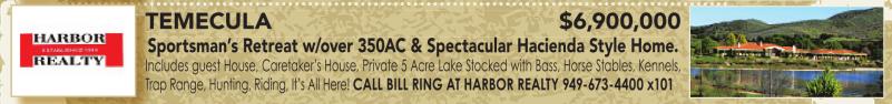 Includes guest House, Caretaker’s House, Private 5 Acre Lake Stocked with Bass, Horse Stables, Kennels, Trap Range, Hunting, Riding, It’s All Here! CALL BILL RING AT HARBOR REALTY 949-673-4400 x101
