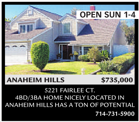 4BD/3BA HOME NICELY LOCATED IN ANAHEIM HILLS HASATONOFPOTENTIAL 714-731-5900