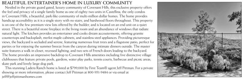 This stunning Ladera Ranch home is listed at $799,000 by First Team® agent Jeff Pittman. For a private showing or more information, please contact Jeff Pittman at 800-951-9484 or via email at jeff@jeffpittmanhomes.com