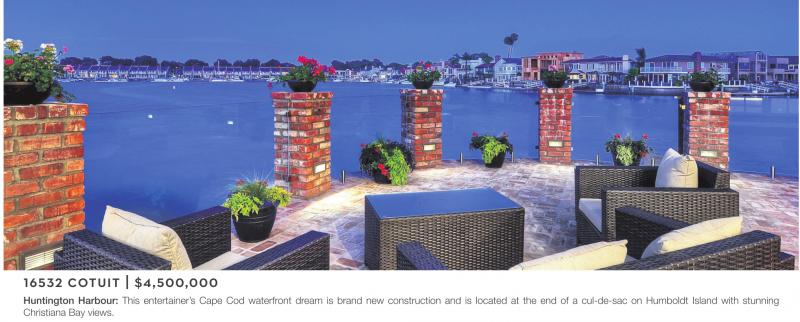 Huntington Harbour: This entertainer’s Cape Cod waterfront dream is brand new construction and is located at the end of a cul-de-sac on Humboldt Island with stunning Christiana Bay views.
