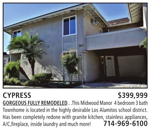 Townhome is located inthe highly desirable Los Alamitos school district. Has been completely redone with granite kitchen, stainless appliances, A/C,fireplace,insidelaundry andmuchmore! 714-969-6100