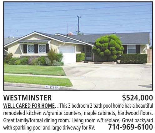WESTMINSTER $524,000 WELL CARED FORHOME…This 3bedroom2bathpoolhome has abeautiful